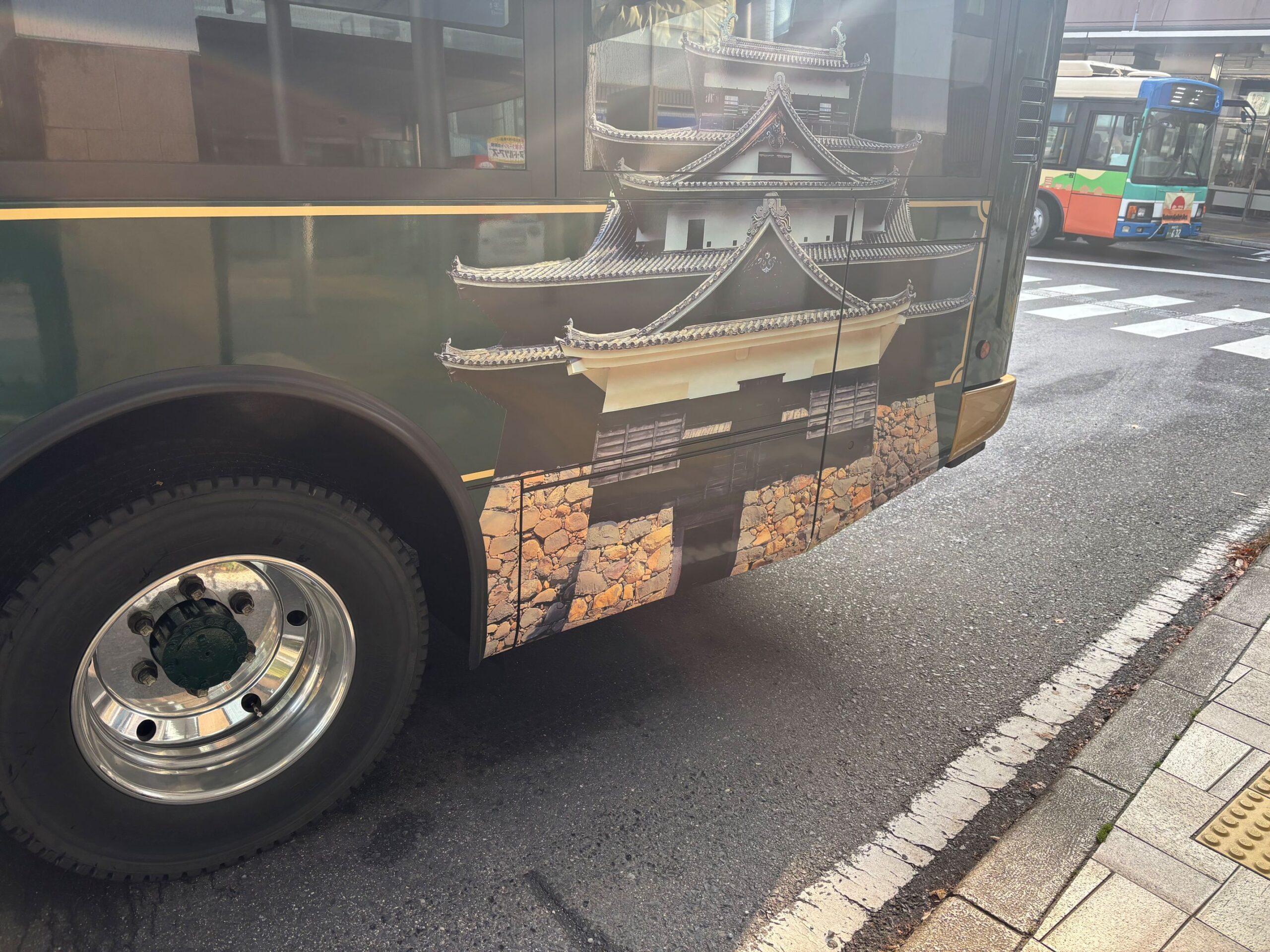 この周遊観光バスに乗って移動します!お城がプリントされています。