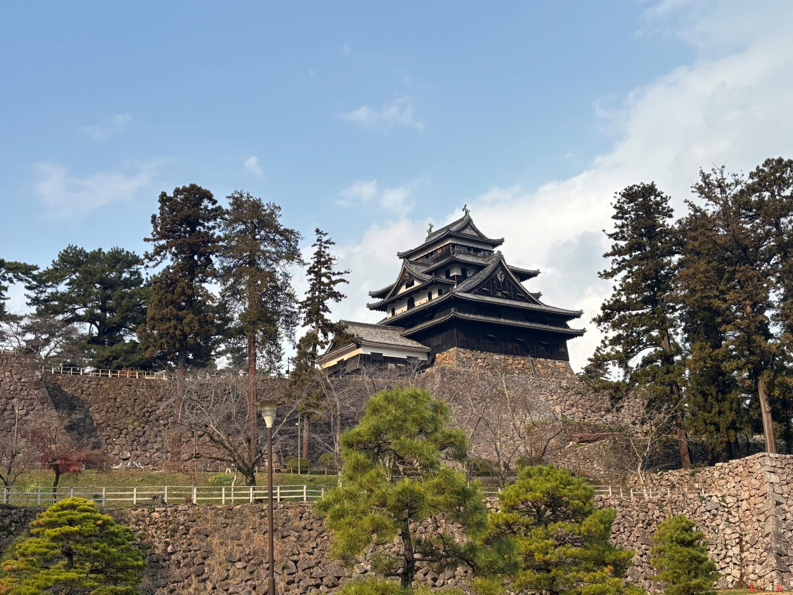 天守は漆黒の重厚な外観。町全体を見下ろせる立地。
