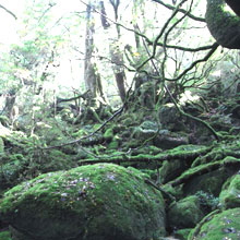 原生林歩道を終えていくとひときわ美しい苔むした森...ここがこけの森。深いなぁ...