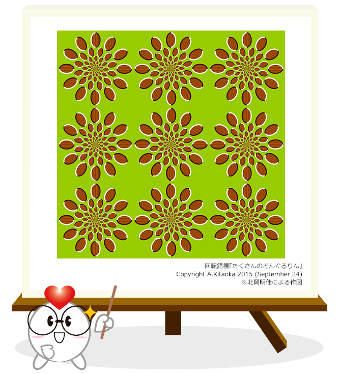 図の名称:回転錯視「たくさんのどんぐるりん」Copyright A.Kitaoka 2015 (September 24)
